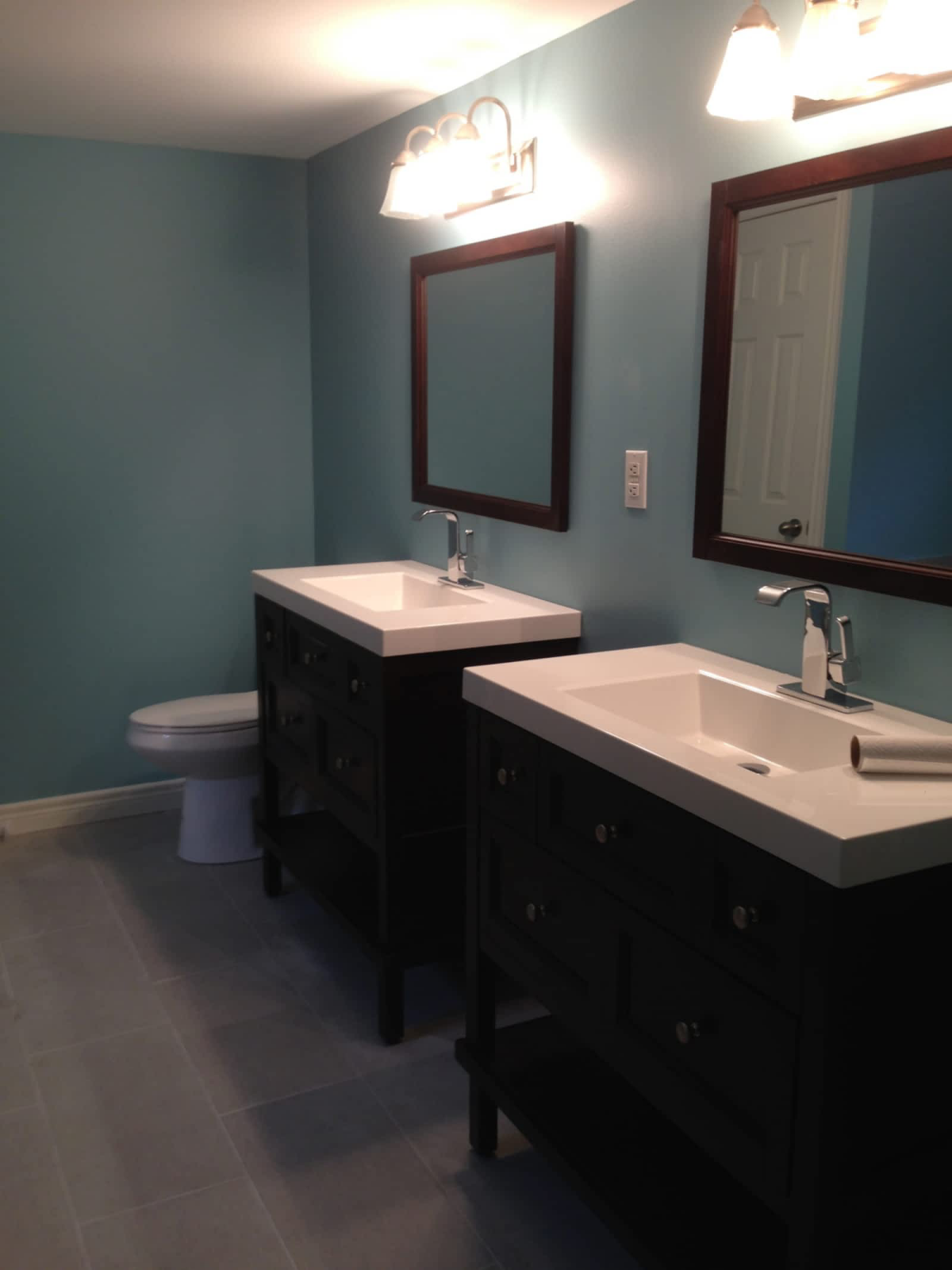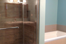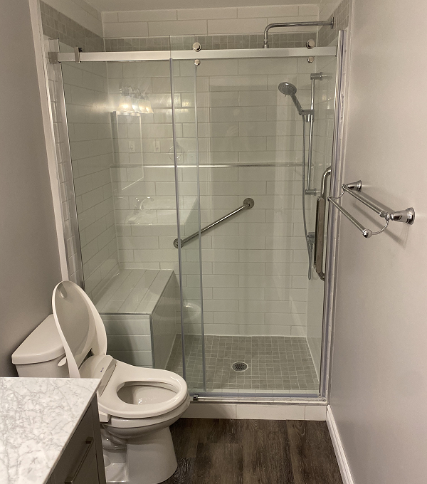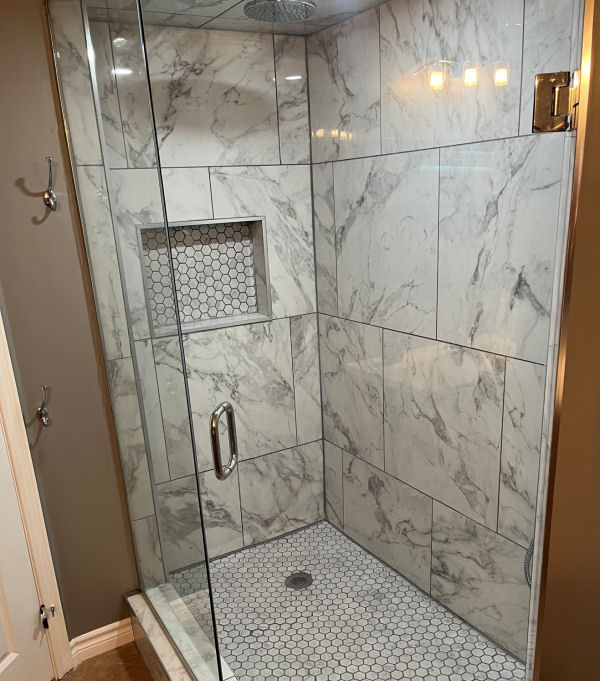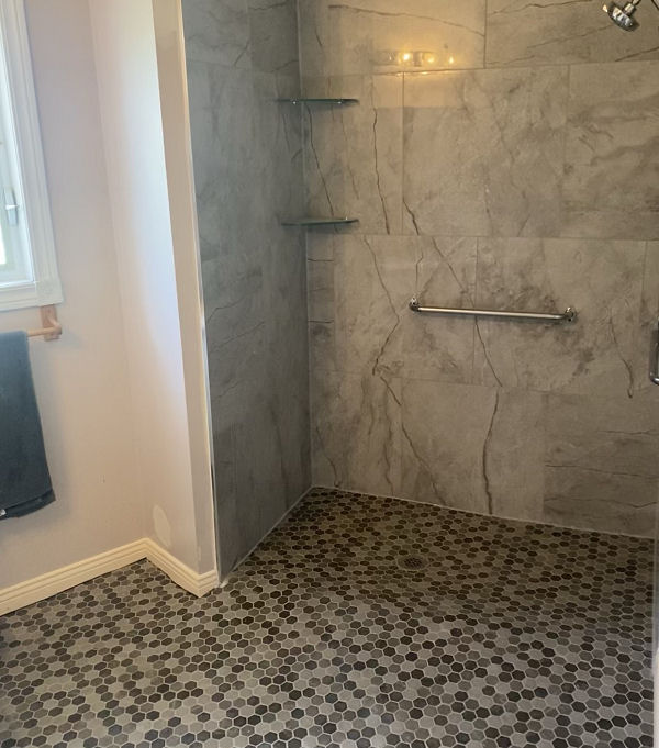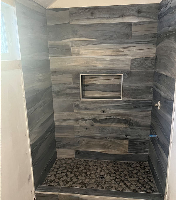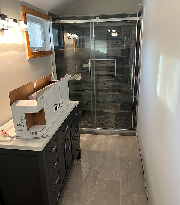 Full Bathroom build with shower and sink in tub also heated tile floor.