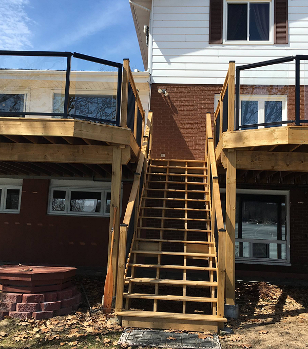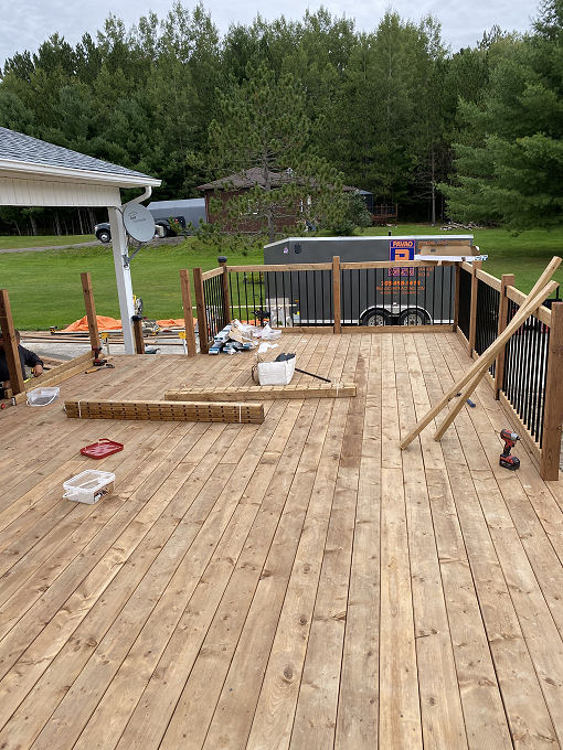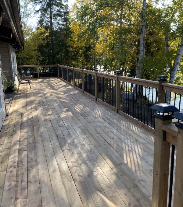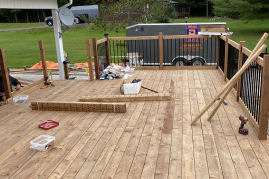 New 55'x 22' deck on the lake with combination Glass railing and Metal